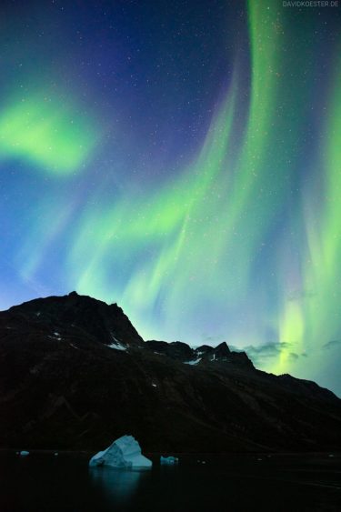 Im hohen Norden Europas erstreckt sich mit Grönland die größte Insel der Welt, die bis heute noch fast komplett mit Eis bedeckt ist. Hier gibt es noch echte Wildnis, die kaum beeindruckender und ursprünglicher sein könnte. Grönland ist eines der letzten Naturparadiese unserer Erde. Die  arktische Schönheit ist ein wahres Paradies für Landschaftsfotografie. Auf einer abenteuerlichen Trekkingtour durch den wilden Süden Grönlands hat Landschaftsfotograf David Köster die Insel in eindringlichen Bildern porträtiert und Impressionen von haushohen Eisbergen, einsamen Fjorden, tanzenden Polarlichtern und arktischer Wildnis mitgebracht.